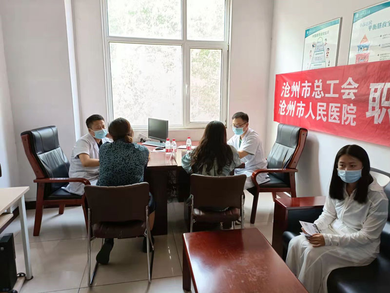 為進一步提升職工幸福指數,發揮職工健康生活室作用,公司工會聯合區總工會、滄州市總工會特聘請滄州市人民醫院中醫科張龍、何肖兩位醫生,6月16日下午,來公司坐診,免費為職工開展健康咨詢和問診活動。