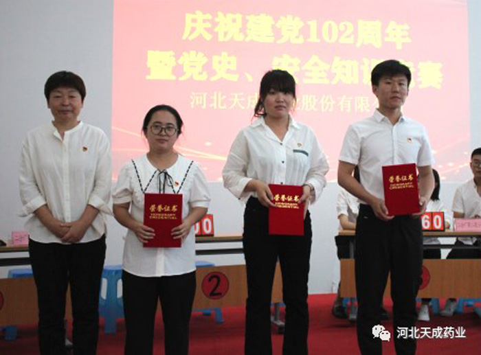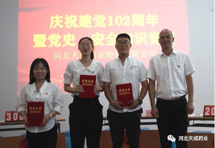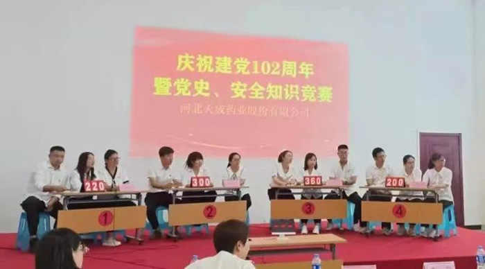 守望初心勇?lián)?dāng),篤定前行綻芳華 | 河北天成藥業(yè)開(kāi)展慶祝建黨102周年優(yōu)秀黨員及先進(jìn)黨小組表彰大會(huì)暨主題黨史及安全知識(shí)競(jìng)賽活動(dòng)