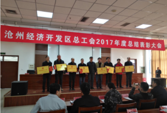 2018年3月6日上午,滄州經(jīng)濟(jì)開發(fā)區(qū)總工會召開2017年度模范及先進(jìn)工會組織的總結(jié)表彰大會。