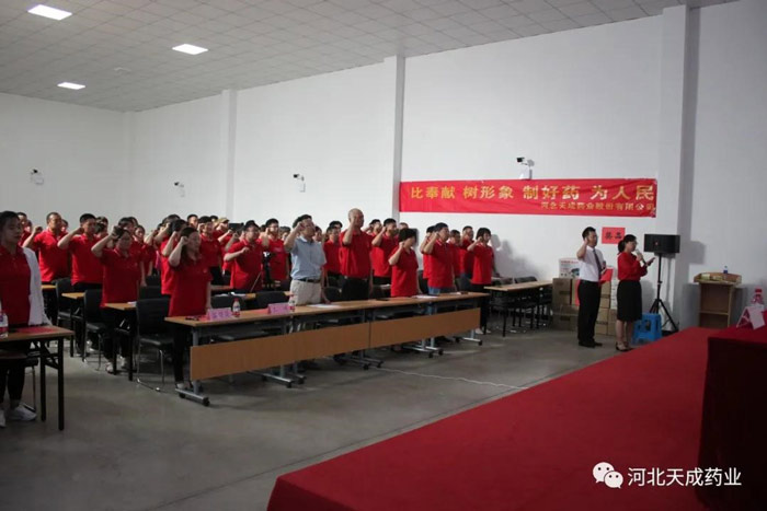 6月29日下午,中共河北天成藥業股份有限公司黨總支表彰大會暨黨史知識競答活動在三分廠黨員活動室隆重舉行。黨總支部正式黨員、預備黨員、入黨積極分子和已寫入黨申請書人員以及部分黨外群眾共計90余人參加,滄州市經濟技術開發區企業黨委負責人曲明利受邀參加此次活動。