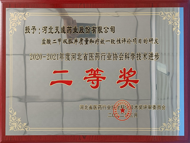 2020-2021年度河北省醫(yī)藥行業(yè)協(xié)會(huì)科學(xué)技術(shù)進(jìn)步二等獎(jiǎng)